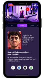 Earning daily rewards and unlocking badges helps you earn free credits that can be used to create more personalized books and videos. You can also submit a book or video for a feature in the Discover library and, if selected, will earn additional credits when your creation is shared for others to enjoy. Being rewarded for reaching various milestones in the app keeps readers engaged, learning, and continually creating!